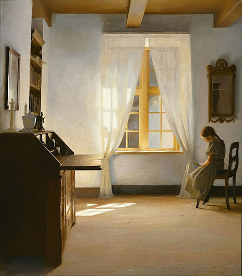 Lo que reflejan las imágenes anteriores pasaba a principios del XX en Dinamarca, el país de origen dePeter Wilhelm Ilsted y de su cuñado Vilhelm Hammershøi(1864-1916), otro pintor excelente que pintó unos cuadros muy parecidos a éstos, en los que la luz lo es casi todo. Una maravilla.